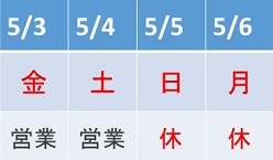 下記の日程でゴールデンウィークの