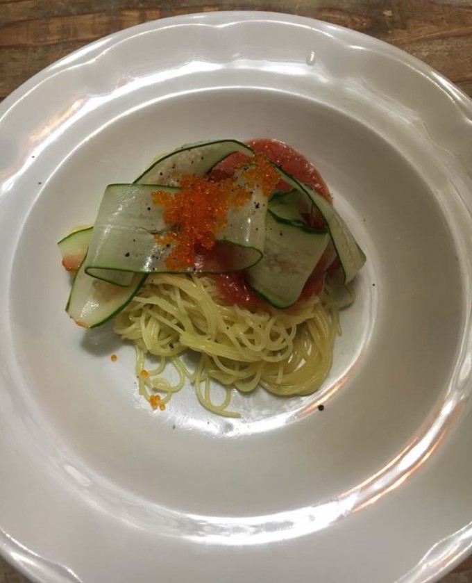 本日のパスタはとびこのパスタでしたが、今が旬のたちうおと