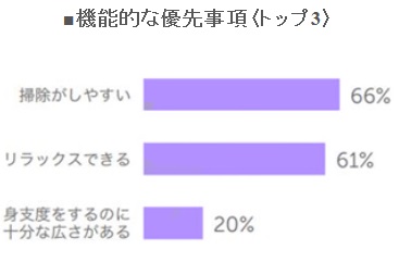 機能面では掃除がしやすい(66%)、リラックス